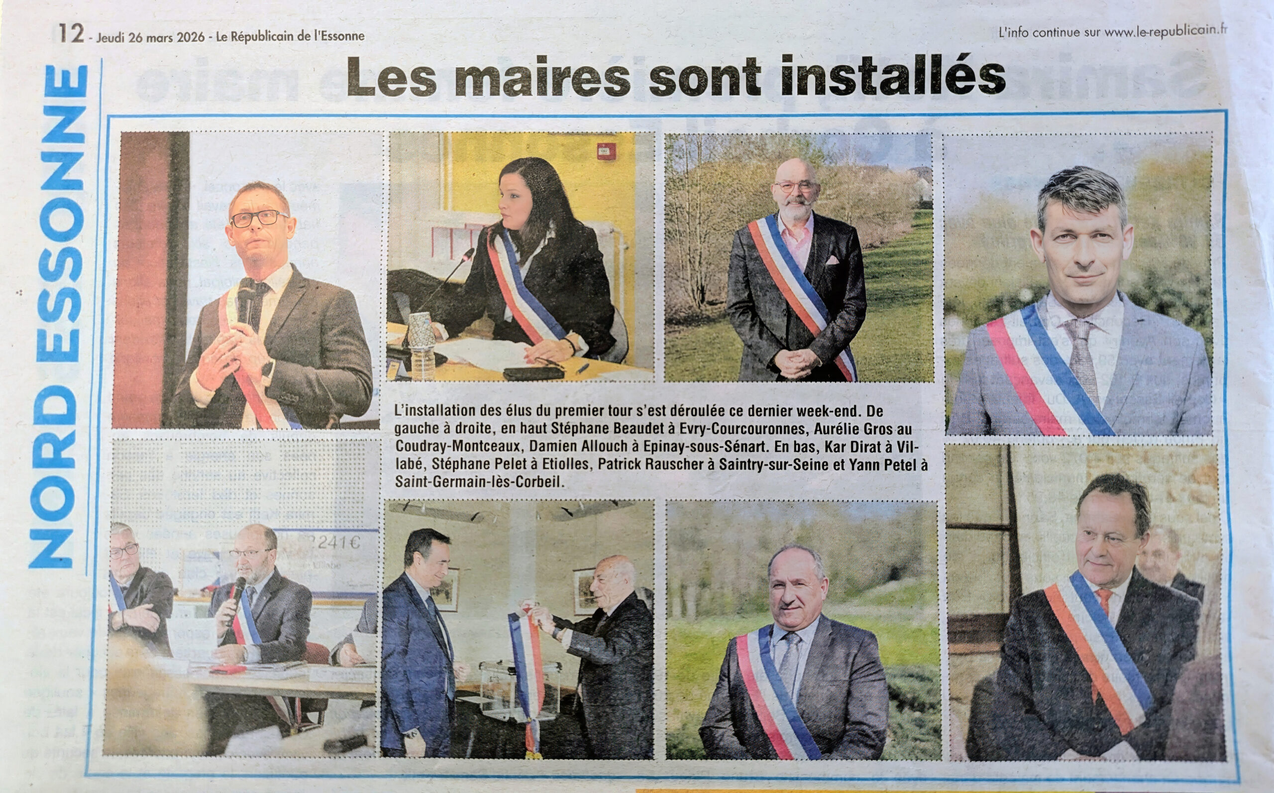 Article du Républicain de l’Essonne du 26 mars 2026 sur « Les Maires sont installés »